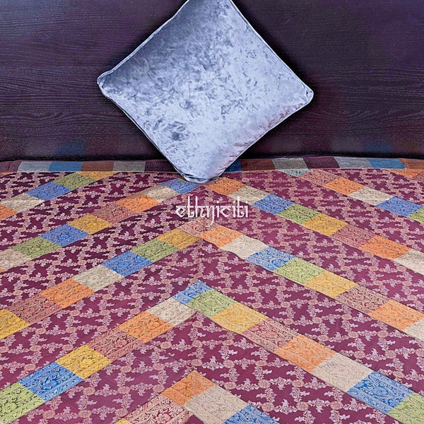 Cotton Brocade Silk King Red Brown : Cotton Brocade Silk King Red Brown Multicolour Bedspread Bedcover Bedsheet Throw. This beautiful Cotton King Size Bedcover is made in India.