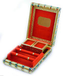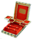 The sturdy design of this finely carved Meenakari Golden Jewellery Box adds substance to the subtlety and this makes it the perfect combination of beauty and brawn to render it the ideal choice for storing something as precious as the jewellery.