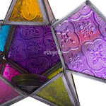 Moroccan Star Glass Lantern - Small : These are genuine Moroccan Star Glass Lantern - Small style Embossed Coloured Glass Lanterns in Star shape. Moroccan Star Glass Lantern - Small have been manufactured in India on a Fair Trade basis.