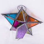 • These are genuine Moroccan Star Glass Lantern - Small style Embossed Coloured Glass Lanterns in Star shape.