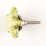 Yellow with Grit Star Ceramic Knob. This beautiful vintage style cabinet handle/pull/knob is perfect for both new and old furniture. It is an Elegant and stylish Knob which can easily add value to your furniture whether it is in Bedroom, Lounge or Kitchen.