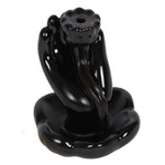 Hand and Lotus Backflow Incense Burner : A stunningly simple Hand and Lotus Backflow Incense Burner in a black ceramic hand and lotus flower design. Beautiful to watch Hand Backflow Incense Burner.