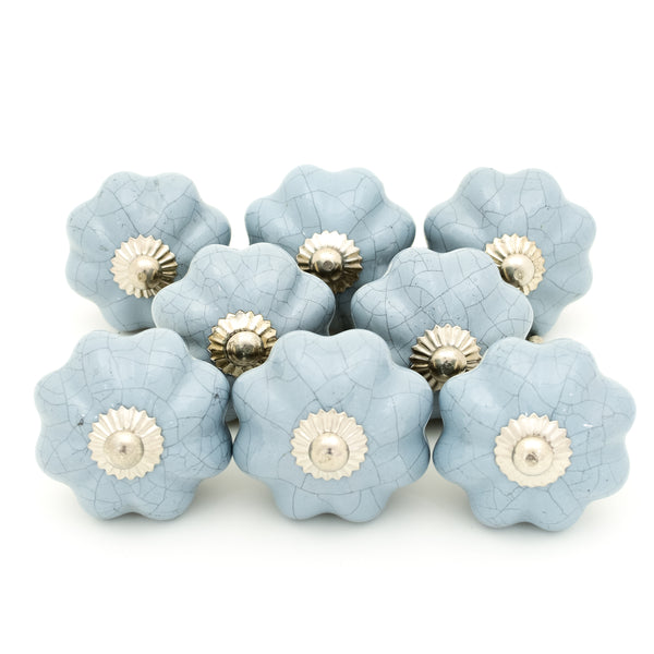 Pumpkin Ceramic Knobs 8 Pack Grey Crackle are custom printed with grey porcelain and are in excellent condition. These ceramic knobs door pull handles help beautifying your cupboards, drawers, doors, cabinets, dressers, etc. and catches everyone's attention. Free UK shipping 10% discount Code PERC10