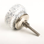 White with Grit Button Ceramic Knob : Beautifully hand painted White with Grit Button Ceramic Knob / pulls. The bolt length on the White with Grit Button Ceramic Knob will, at least, allow fitting to furniture 2.5cm thick.