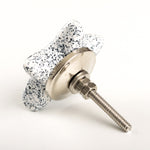 White with Grit Star Ceramic Knob : Beautifully hand painted White with Grit Star Ceramic Knob / pulls. The bolt length on the White with Grit Star Ceramic Knob will, at least, allow fitting to furniture 2.5cm thick.